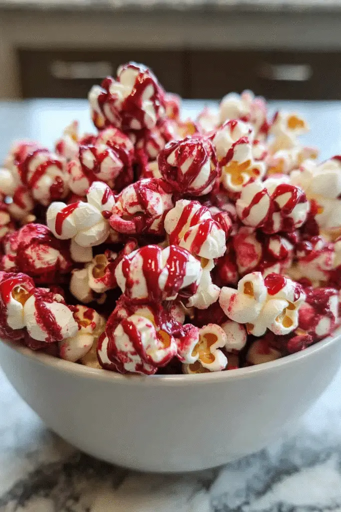 The 15-Minute Bloody Red Velvet Popcorn is a playful twist on traditional popcorn that draws inspiration from the beloved red velvet cake, a classic American dessert known for its rich flavor and striking color. This recipe marries the nostalgia of childhood snacks with the elegance of a festive treat, making it perfect for any occasion, especially Halloween.
