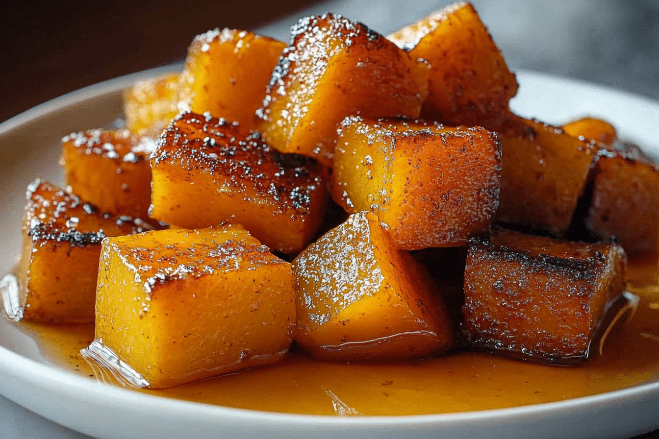 A quick and easy recipe for delicious roasted butternut squash with a sweet brown sugar glaze, perfect for fall.