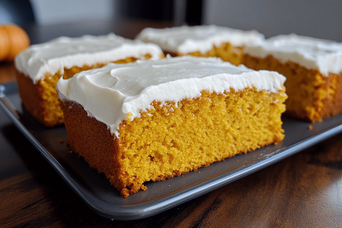A delicious and moist pumpkin sheet cake perfect for fall gatherings.