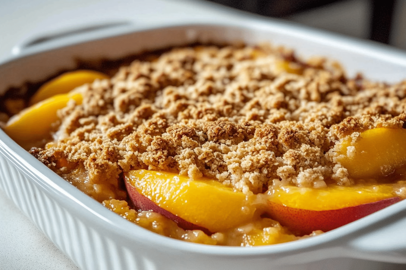 - Peach and Almond: Incorporate sliced almonds into the crumble topping for a delightful crunch. You can also add a splash of almond extract to the peach mixture for a nutty aroma that pairs beautifully with the fruit.