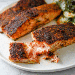 - Can I use frozen salmon for this recipe? Yes, you can use frozen salmon! Just be sure to adjust the cooking time accordingly. Typically, frozen fillets may require an additional 2-4 minutes of cooking time. Always check for doneness by ensuring the salmon flakes easily with a fork.