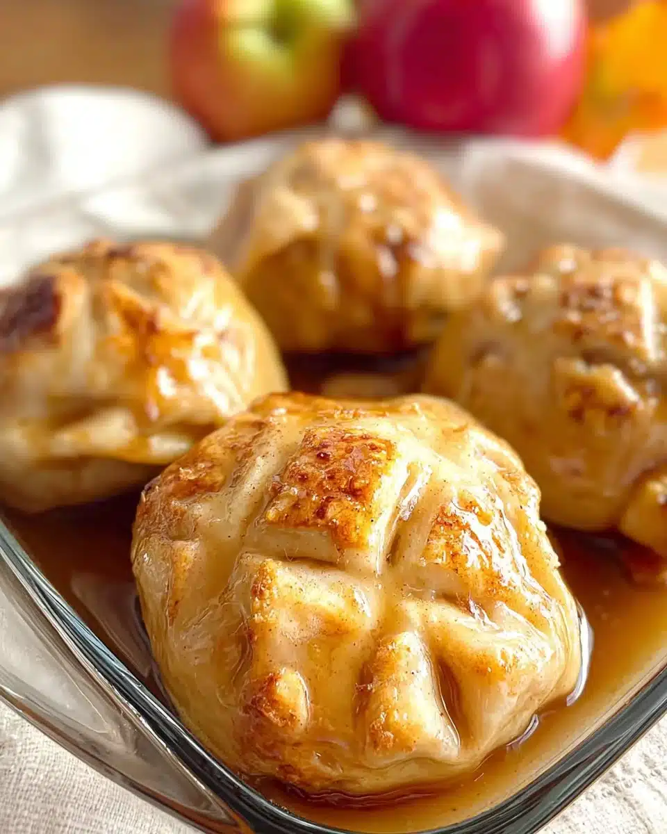 Delightful homemade apple dumplings filled with spiced apples, wrapped in flaky pastry—perfect for cozy gatherings or as a festive treat.