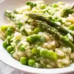 A creamy and comforting risotto packed with fresh asparagus and peas, perfect for spring dining.