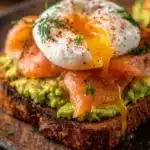 As you can see, avocado toast with poached egg and smoked salmon is more than just a dish; it’s a delightful combination of flavors, health benefits, and convenience, perfect for any time of day. I encourage you to try this recipe and add your own personal touches! Share your experiences or variations in the comments below – let’s celebrate the love of cooking and sharing meals together.