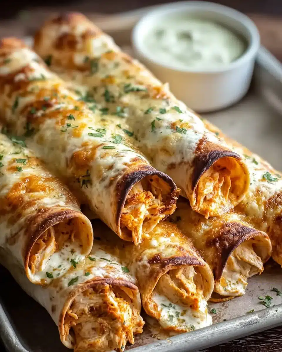 These baked taquitos are filled with creamy chicken and cheese, offering a flavor experience that’s both indulgent and satisfying.