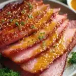 Delightful Baked Honey Ham Slices infused with honey and spices, perfect for family gatherings.
