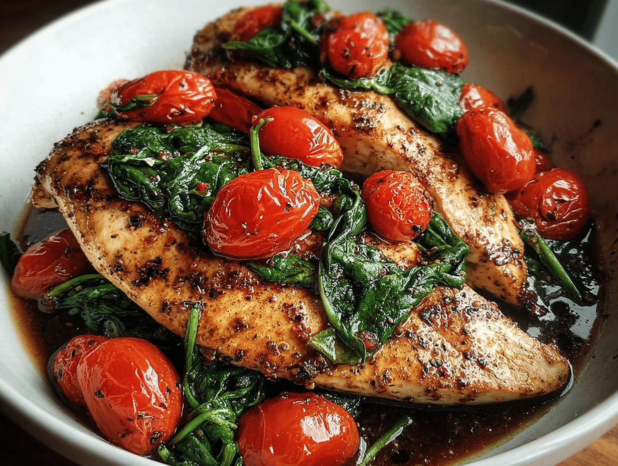 As a home cook, I cherish recipes that not only nourish but also tell a story. Balsamic Chicken Breast with Spinach and Tomatoes is one such dish that brings warmth and comfort to my kitchen. The aroma of marinated chicken sizzling in a skillet fills the air, while the vibrant colors of fresh spinach and juicy tomatoes create a feast for the eyes. This recipe is a delightful blend of flavors, where the tangy balsamic vinegar elevates the tender chicken, making it a family favorite. Join me as we explore this easy yet elegant dish that’s perfect for any occasion!