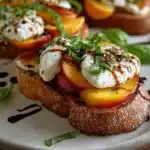 I still remember the warm summer evenings spent in my grandmother’s garden, the air heavy with sweet, ripe peaches hanging from boughs swaying lazily in the breeze. Those memories unfold in my mind as I prepare an elegant dish that captures all of that nostalgia: Balsamic Peach and Burrata Toast. Each bite is a delightful harmony, where juicy peaches meet the creamy richness of burrata, all elevated by the tangy sweetness of balsamic glaze.