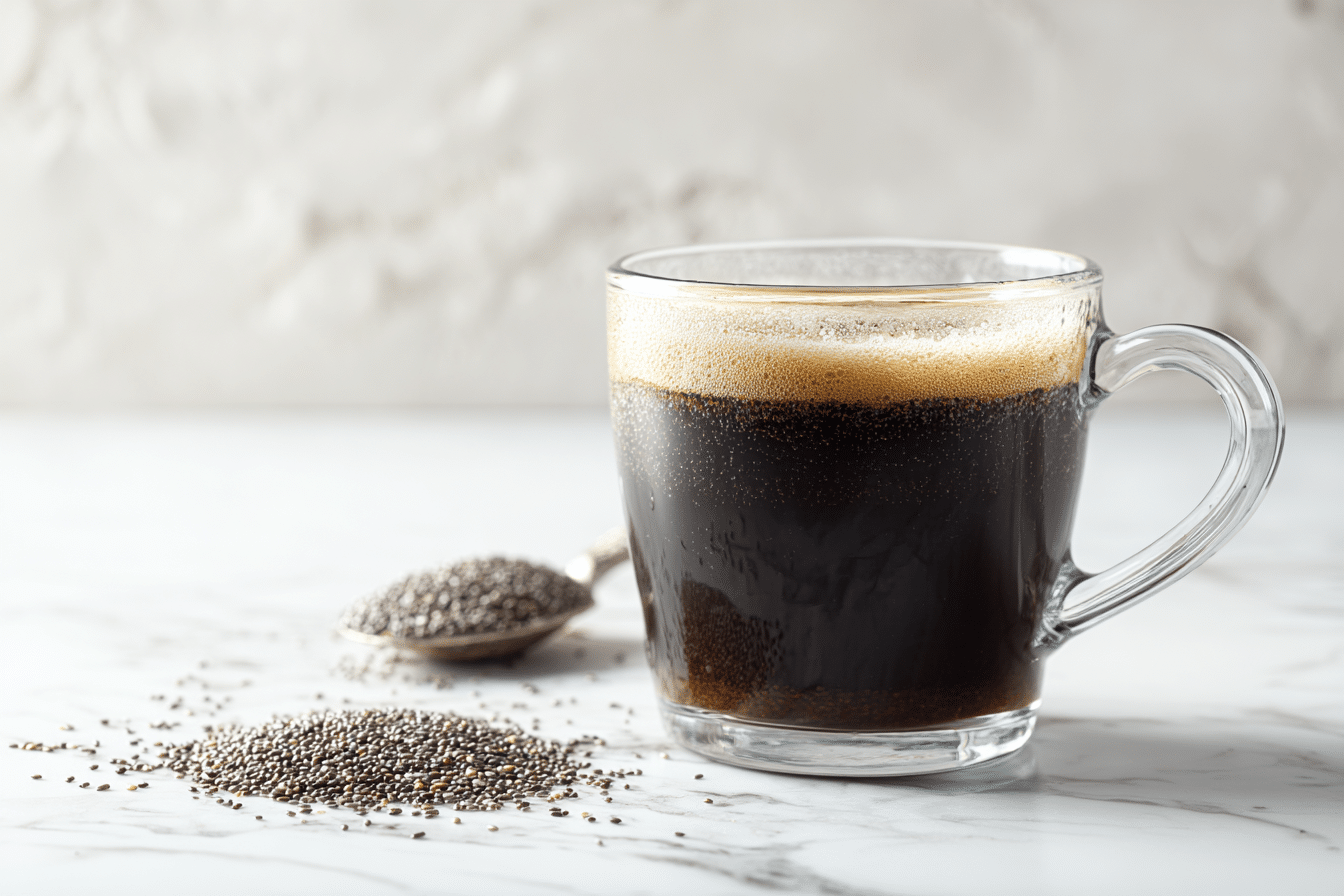 As the weather warms, I shift toward cold brew steeped overnight with soaked chia. It’s refreshing, hydrating, and gently detoxifying. I pour it over almond milk with a few basil seeds for extra digestive support.