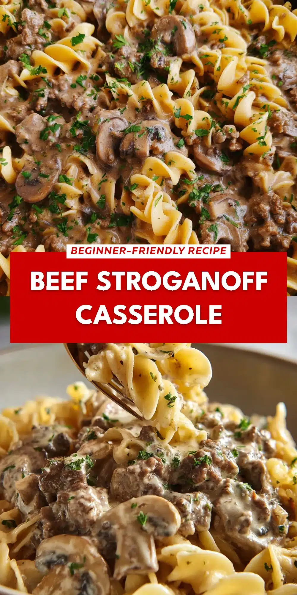 - Garnish with fresh chopped parsley before serving. Enjoy your hearty Beef Stroganoff Casserole!