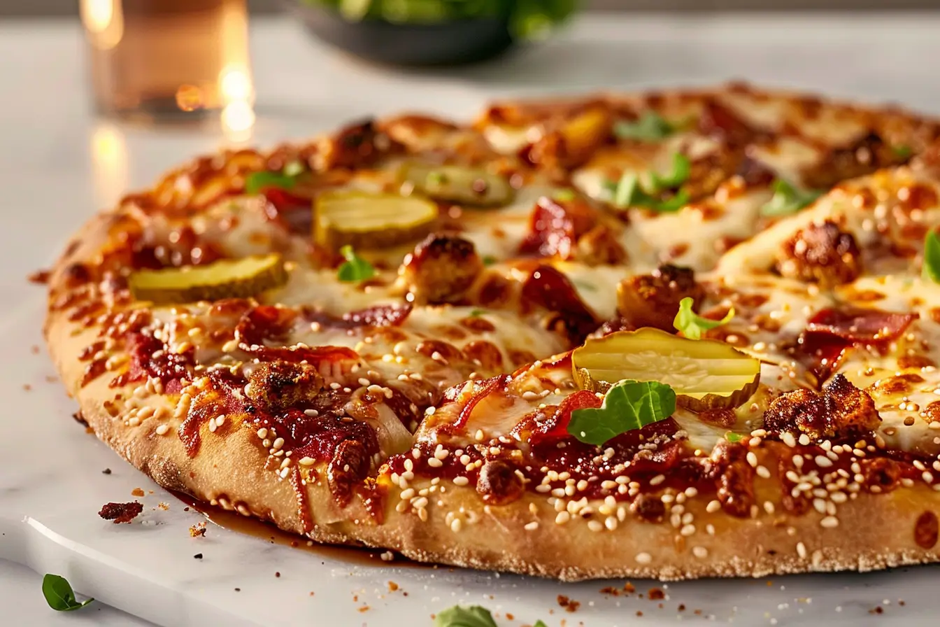 Start by browning ground beef with a bit of seasoning—just garlic powder, onion powder, and a pinch of paprika. Roll out your pizza dough and spread on homemade Big Mac sauce (mayo, ketchup, mustard, relish, and spices). Then add cheese, cooked beef, minced onion, and chopped pickles. Bake at 475°F for 10–12 minutes, then top with shredded lettuce and more sauce. It’s everything you love about a Big Mac—just on a hot, crispy crust.