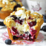 Deliciously moist muffins filled with fresh blueberries and a creamy cheese center.