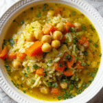 Brothy Chickpea and Rice Soup is a Mediterranean-inspired dish that beautifully combines wholesome ingredients into a hearty meal. This soup is a celebration of simplicity, showcasing the rich flavors of chickpeas and rice, which are staples in many cultures around the world. The warm, savory broth envelops each ingredient, creating a comforting experience that nourishes both body and soul.