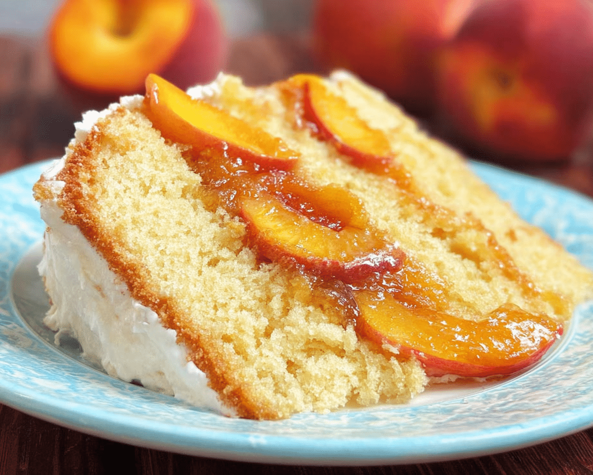 Yes, you can use frozen peaches! Just make sure to thaw and drain them well to avoid excess moisture in the batter. This will help maintain the cake’s texture. - Is this cake suitable for large parties?