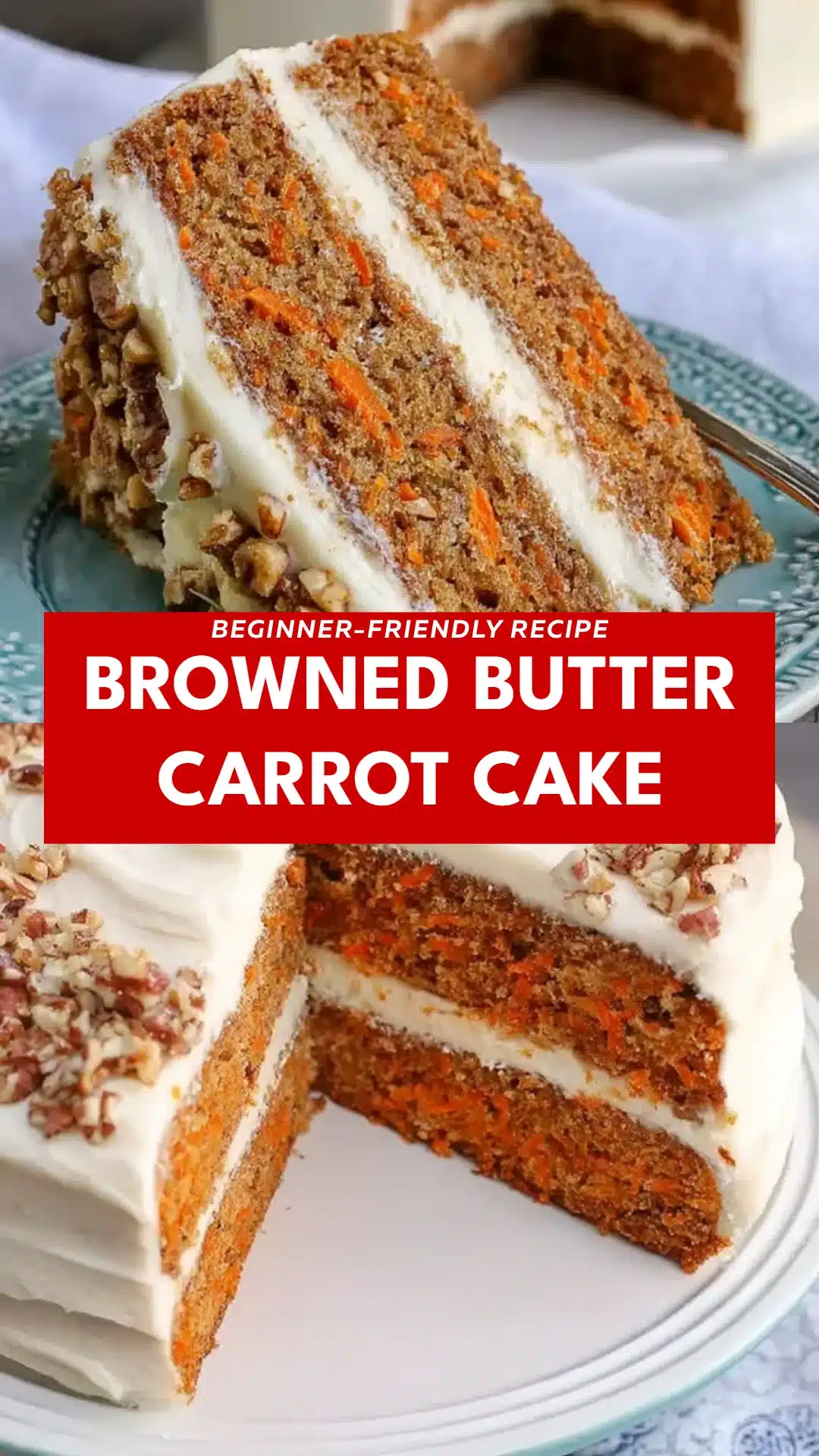 A delightful carrot cake infused with the rich, nutty flavor of browned butter and topped with creamy cream cheese frosting.