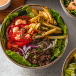 Burger bowls are a delightful reimagining of the classic burger, served in a bowl instead of a bun. This dish combines all the beloved flavors of a traditional burger while offering a healthier, more customizable option. Emerging from the trend of deconstructed meals, burger bowls allow you to enjoy the essence of a burger with fresh ingredients and vibrant toppings. They cater to those who want to indulge in the taste of a burger without the heaviness of bread. With roots in American cuisine, these bowls have gained popularity worldwide, appealing to health-conscious eaters and food lovers alike.