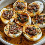 Cajun Boiled Eggs with Spicy Garlic Butter Sauce is a delightful dish that brings a burst of flavor to your table. Whether you’re serving them at a gathering or enjoying them as a snack, these eggs are sure to impress. I hope you give this recipe a try and experience the joy it brings to your kitchen. If you enjoyed this recipe, please share your thoughts in the comments below and don’t forget to share it with your friends and family!