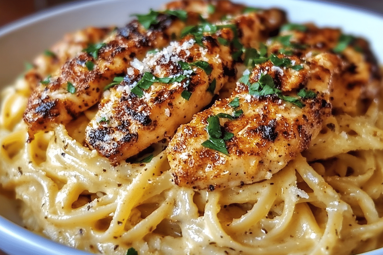 A flavorful recipe combining spicy Cajun chicken with creamy garlic parmesan linguine.