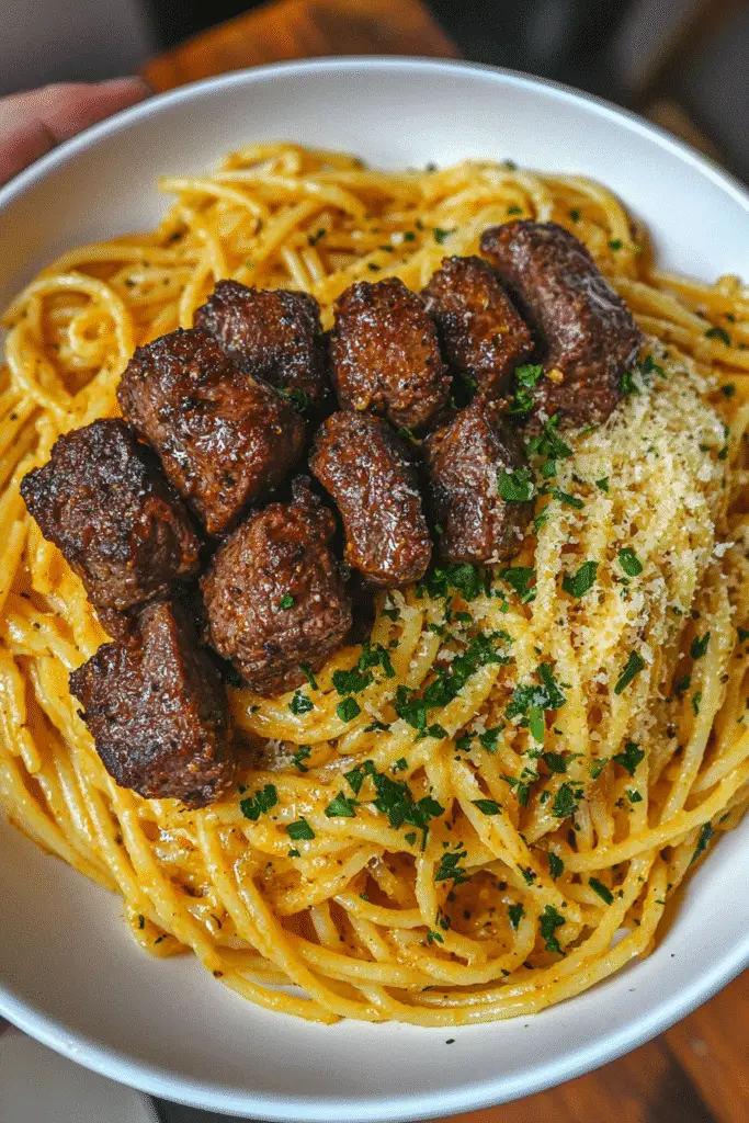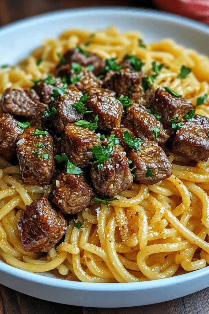 The moment I first tasted it, the rich aroma of garlic and spices enveloped me like a warm hug. This recipe is not just a meal; it’s a celebration of bold flavors and comforting textures. Imagine twirling perfectly cooked spaghetti, glistening in a luscious garlic butter sauce, with tender beef strips adding a satisfying bite. It’s a dish that brings my family together, making every dinner feel special.