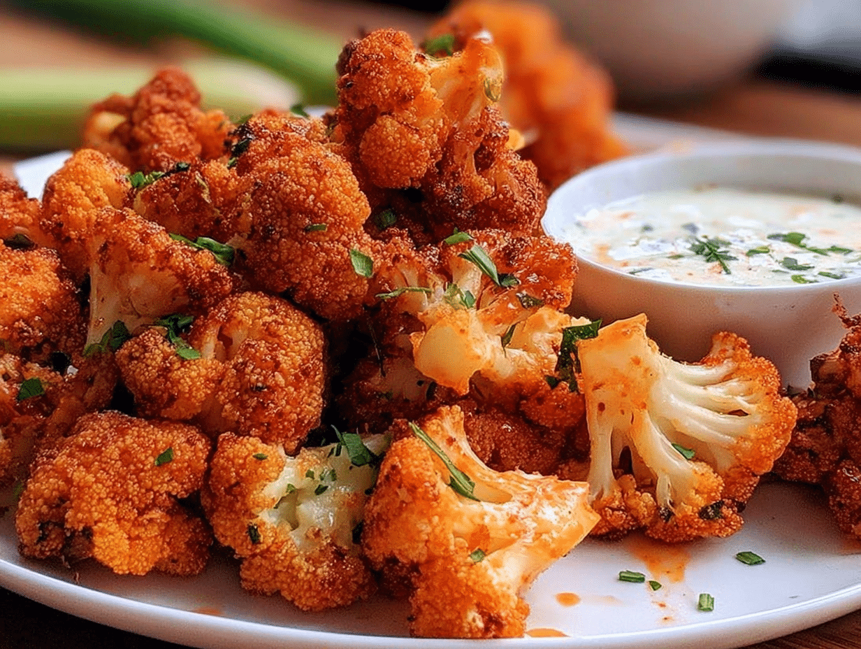 A spicy and flavorful vegan appetizer made with cauliflower, perfect for parties or game day.
