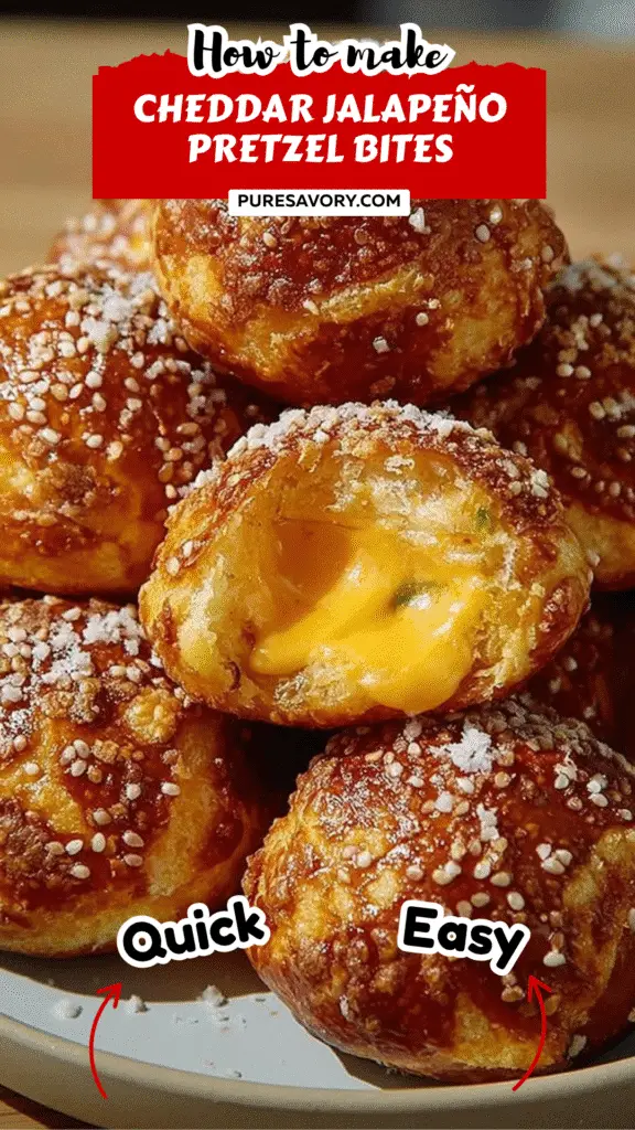 Keywords: Cheddar jalapeño pretzel bites, soft pretzel recipe, homemade pretzel bites, jalapeño cheese snack, easy party appetizers, baking with cheese, savory snack ideas