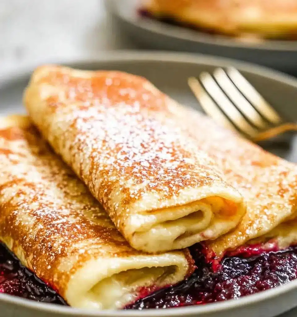 Delicate crepes filled with a rich, creamy cheese mixture that evoke warmth and nostalgia.
