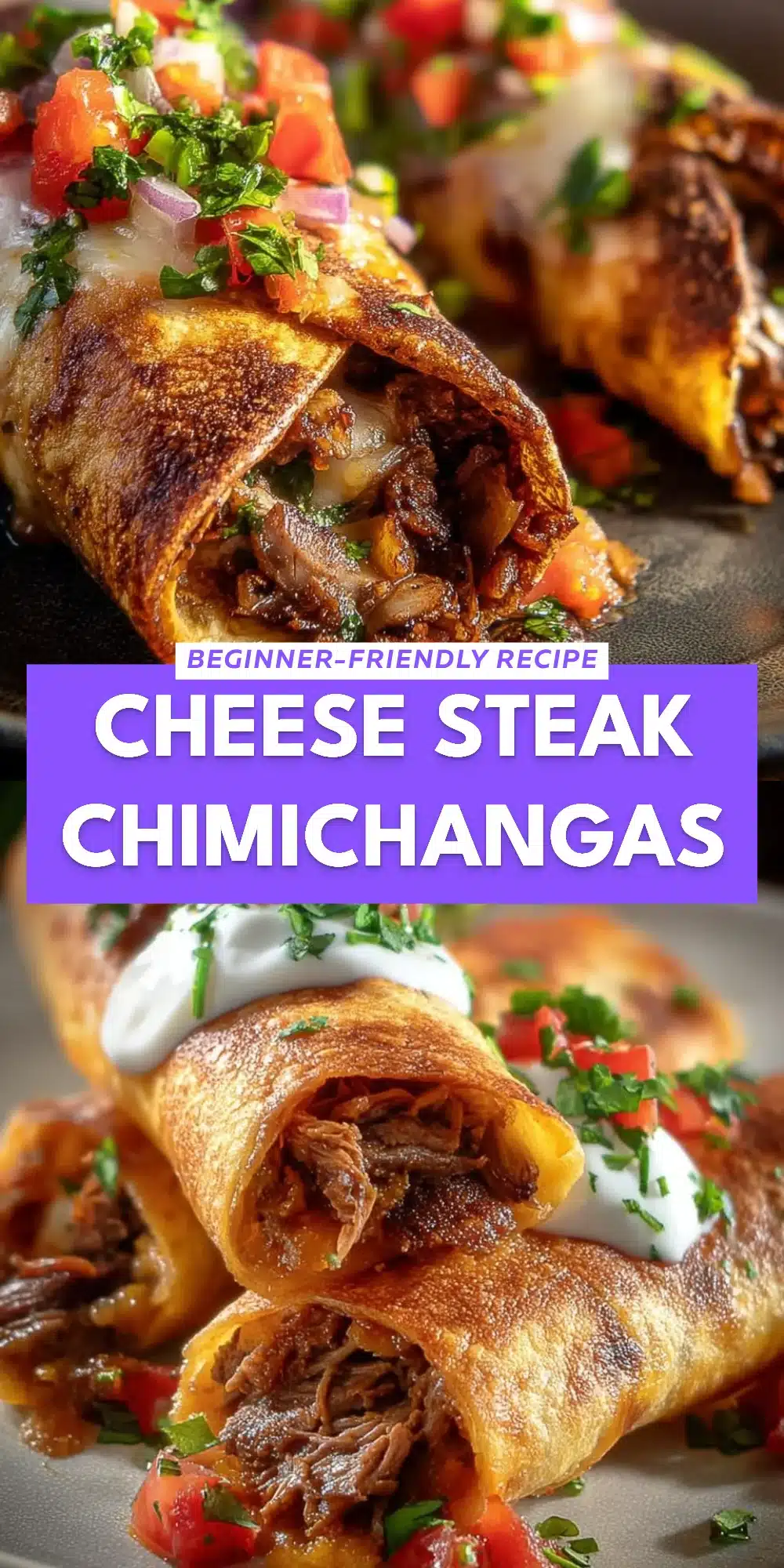 Crispy Cheese Steak Chimichangas filled with savory steak and gooey cheese, perfect for any occasion.