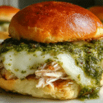 At their core, these sliders feature tender, shredded chicken mixed with vibrant pesto, topped with gooey mozzarella and parmesan cheese, all nestled in soft slider buns. The combination of garlic butter brushed on top adds a savory finish that elevates the entire dish. It’s no wonder that these sliders have become a staple at parties, game days, and family dinners, where they quickly disappear from the platter!