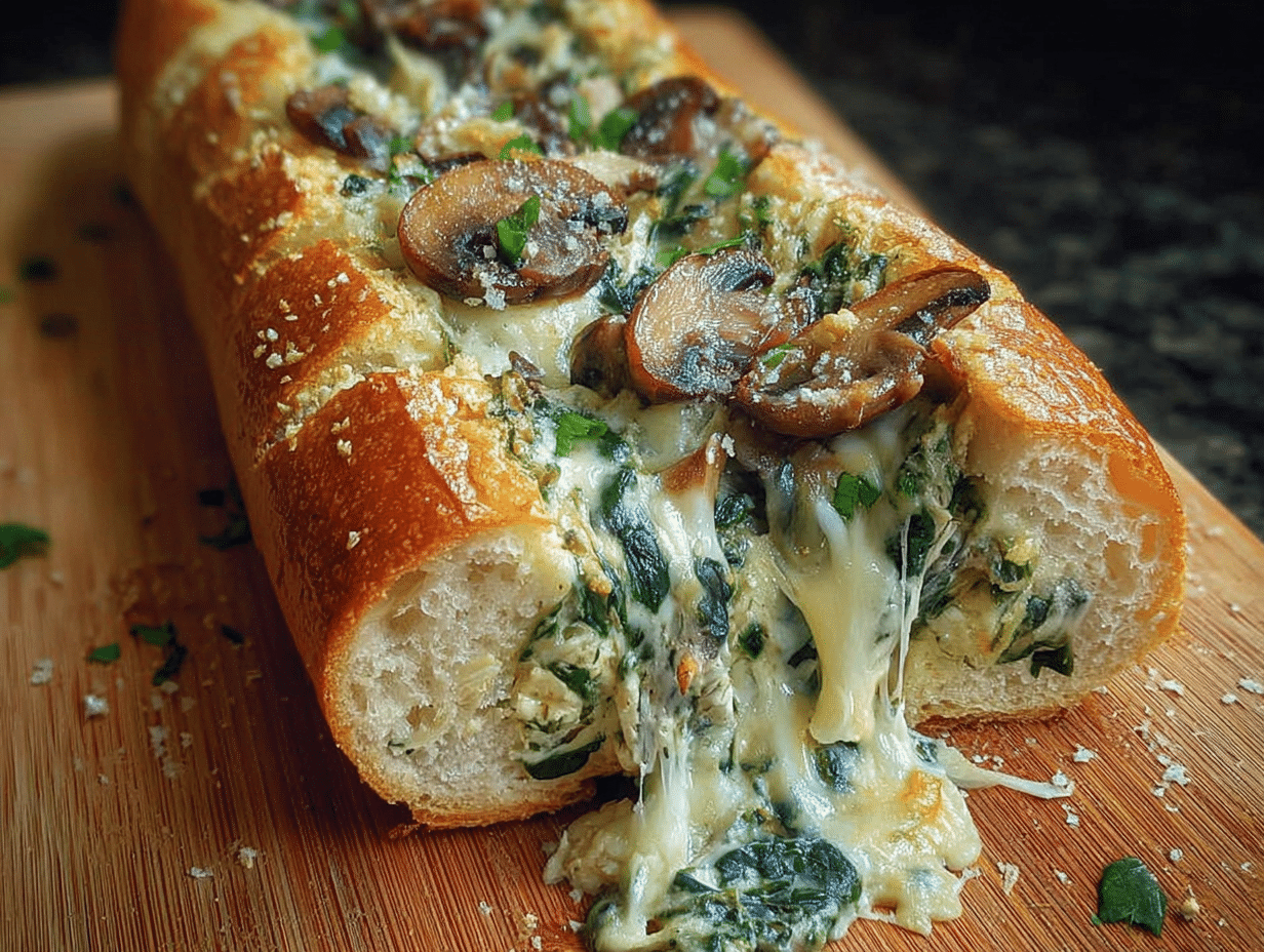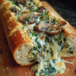 In conclusion, the Cheesy Spinach Artichoke & Mushroom Stuffed Baguette is a delightful dish that brings comfort and joy to any table. Its creamy filling and crispy exterior make it a favorite among family and friends. I hope you give this recipe a try and experience the warmth it brings to your gatherings. If you enjoyed this recipe, please share your thoughts in the comments below and don’t forget to share it with fellow food lovers!