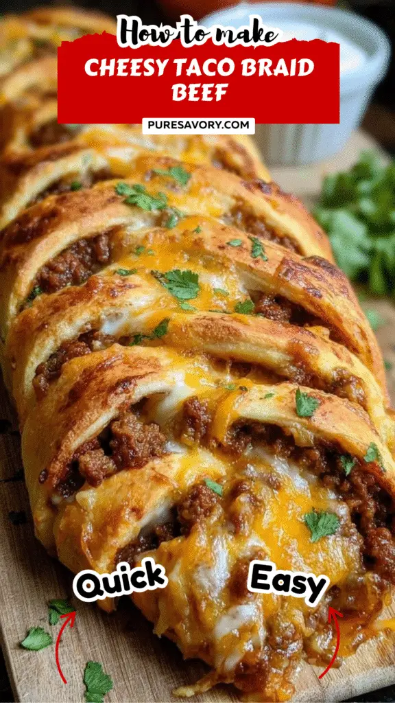 Growing up, taco night was a cherished tradition in my family. The kitchen would fill with the aroma of sizzling spices, and we’d gather around the table, excited to build our own creations. This Cheesy Taco Braid Beef is my playful twist on that beloved ritual, combining the classic flavors of tacos with a fun, braided pastry. Imagine the gooey melted cheese oozing from the flaky crust, each bite bursting with savory goodness.
