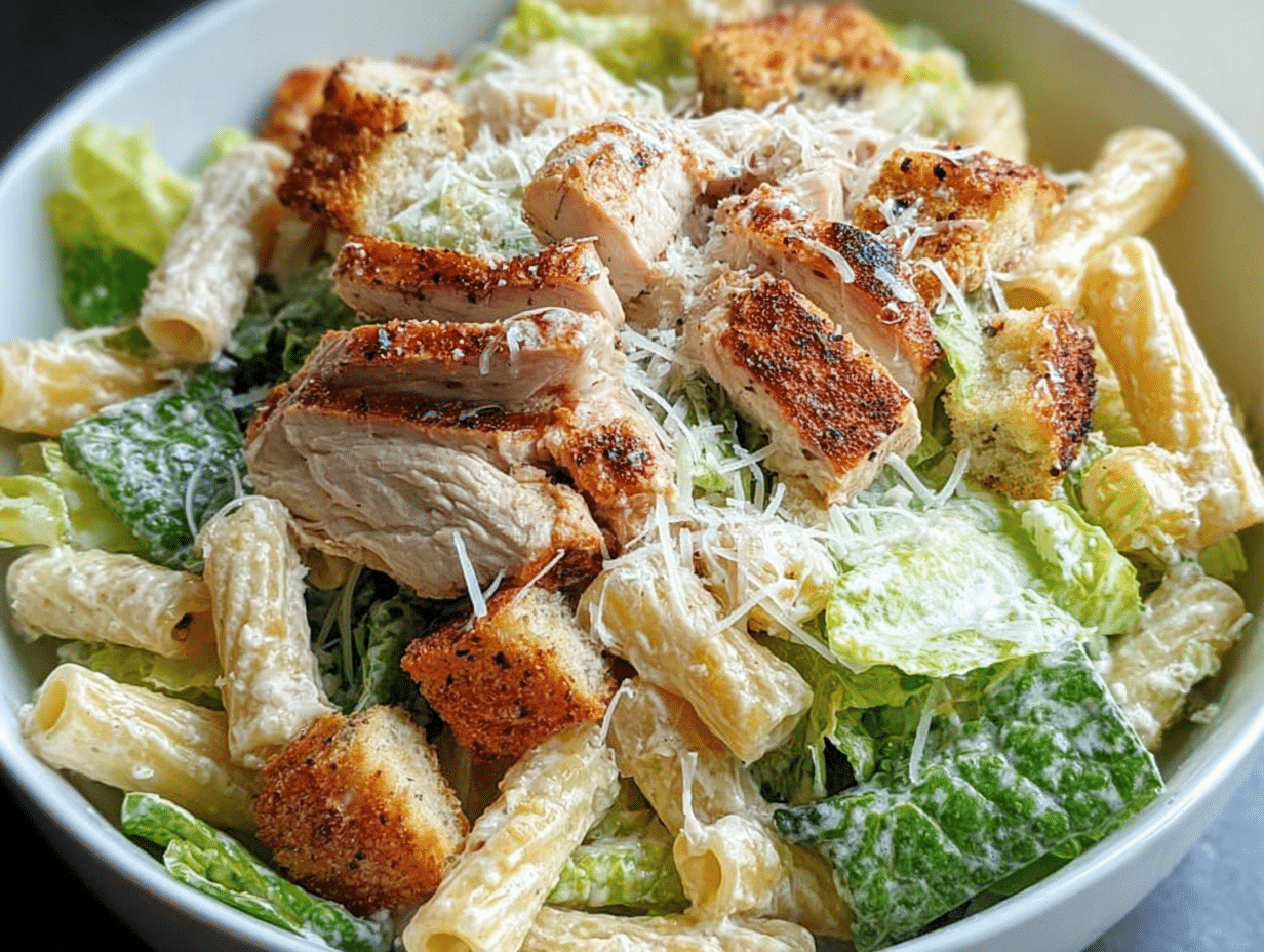 A delicious and easy-to-make Chicken Caesar Pasta Salad that combines the classic flavors of Caesar salad with pasta for a hearty meal.