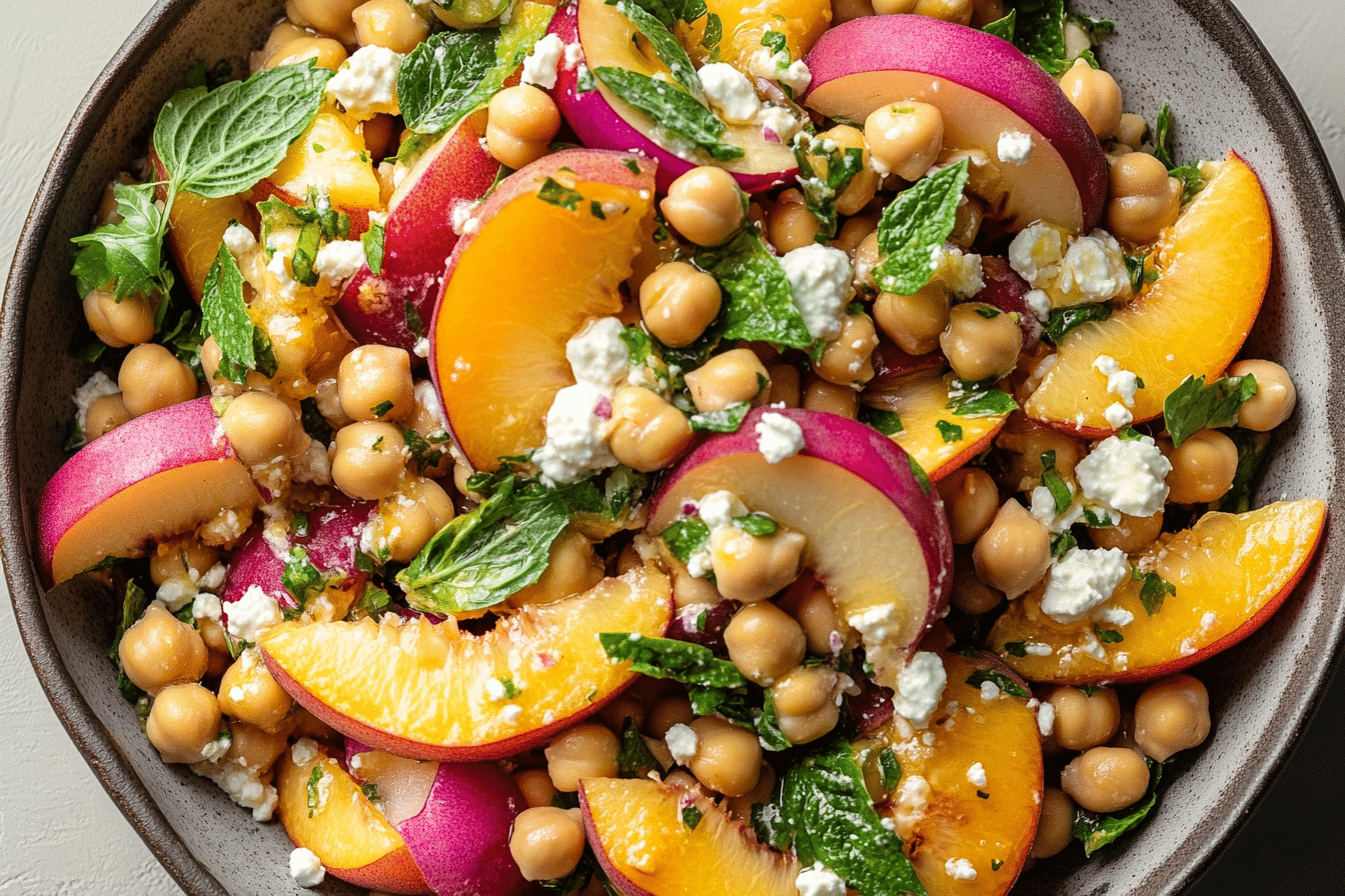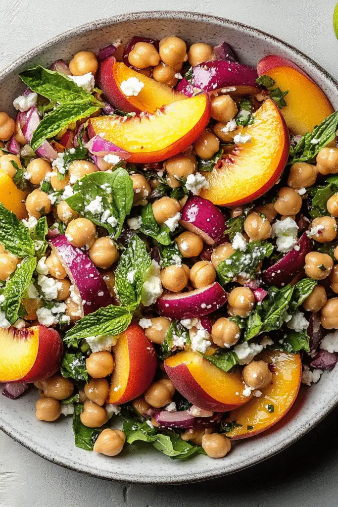 The Chickpea Peach Salad with Honey Lime Dressing is a delightful fusion of flavors that reflects the beauty of summer produce. This salad draws inspiration from Mediterranean and American cuisines, where fresh ingredients take center stage. Chickpeas, a staple in many cultures, are celebrated for their versatility and nutritional benefits. They provide a hearty base, packed with protein and fiber, making this salad not just a side dish but a satisfying meal.