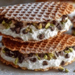 Chocolate Cannoli Pizzelle Sandwiches are a delightful blend of two iconic Italian desserts, bringing together the crispy pizzelle and the rich, creamy filling of cannoli. Pizzelle, which are traditional Italian waffle cookies, are known for their delicate texture and intricate designs. They are often flavored with vanilla or anise, making them a perfect base for a variety of fillings. Cannoli, on the other hand, are famous for their crunchy shells filled with sweetened ricotta cheese, often enhanced with chocolate or candied fruit.