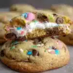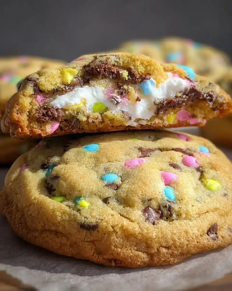 Delight in these festive Chocolate Chip Peep Stuffed Easter Cookies, combining classic chocolate chip goodness with a playful marshmallow surprise.