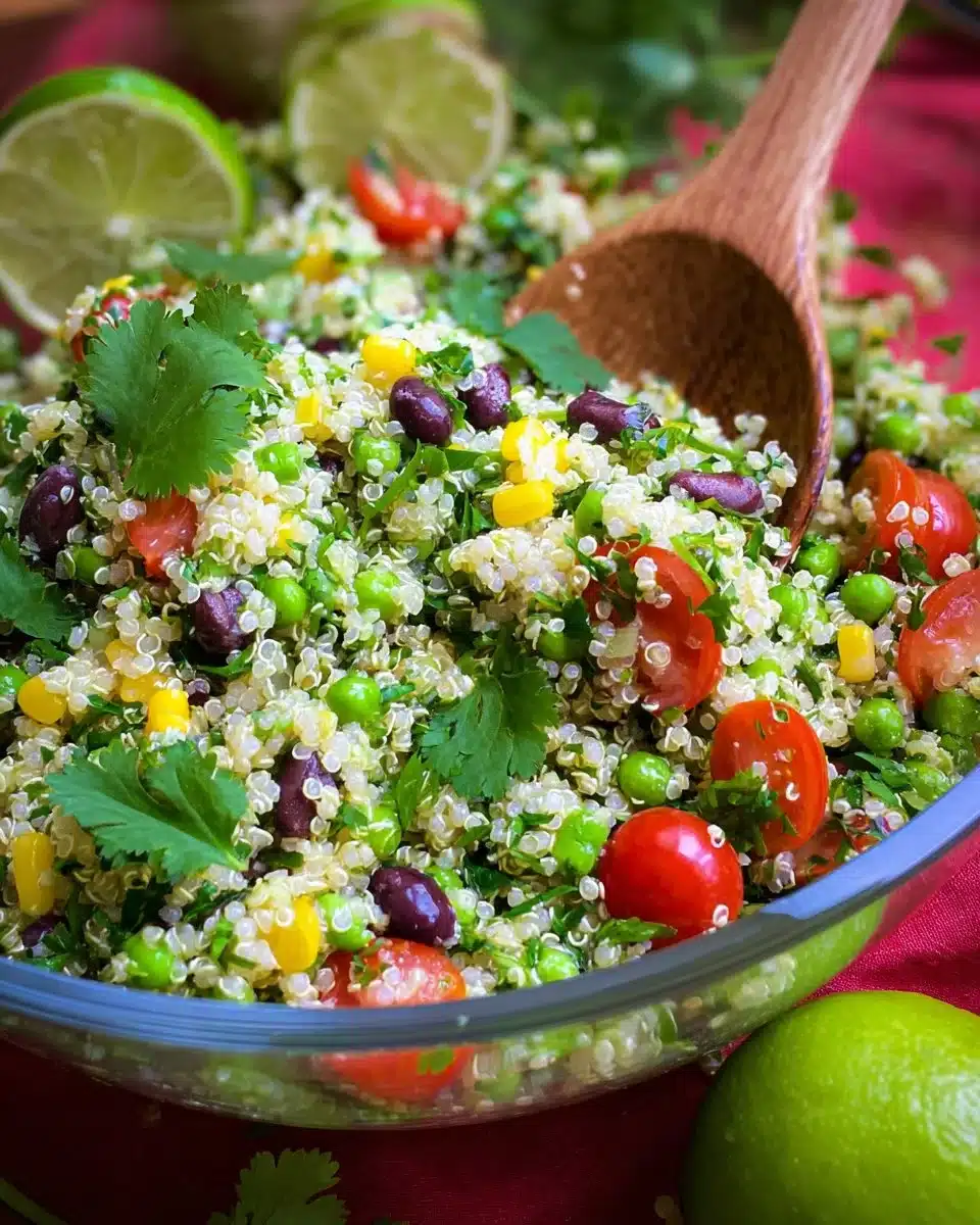 Cilantro Lime Quinoa Salad is a colorful, energizing dish made primarily with fluffy quinoa, vibrant vegetables, and a tangy dressing. This dish has roots that travel through various cuisines, embodying the essence of fresh, vibrant ingredients typical of Latin and Mediterranean culinary traditions. The use of quinoa not only adds a lovely nutty flavor but also brings countless health benefits, making it both a delicious and nutritious choice.
