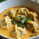 Coconut Curry Soup with Dumplings is a delightful dish that beautifully marries the rich culinary traditions of Thailand with a comforting, home-cooked feel. Originating from the vibrant streets of Thailand, this soup showcases the country’s love for bold flavors and fresh ingredients. The use of coconut milk, a staple in Thai cuisine, adds a creamy richness that perfectly complements the aromatic spices found in red curry paste.