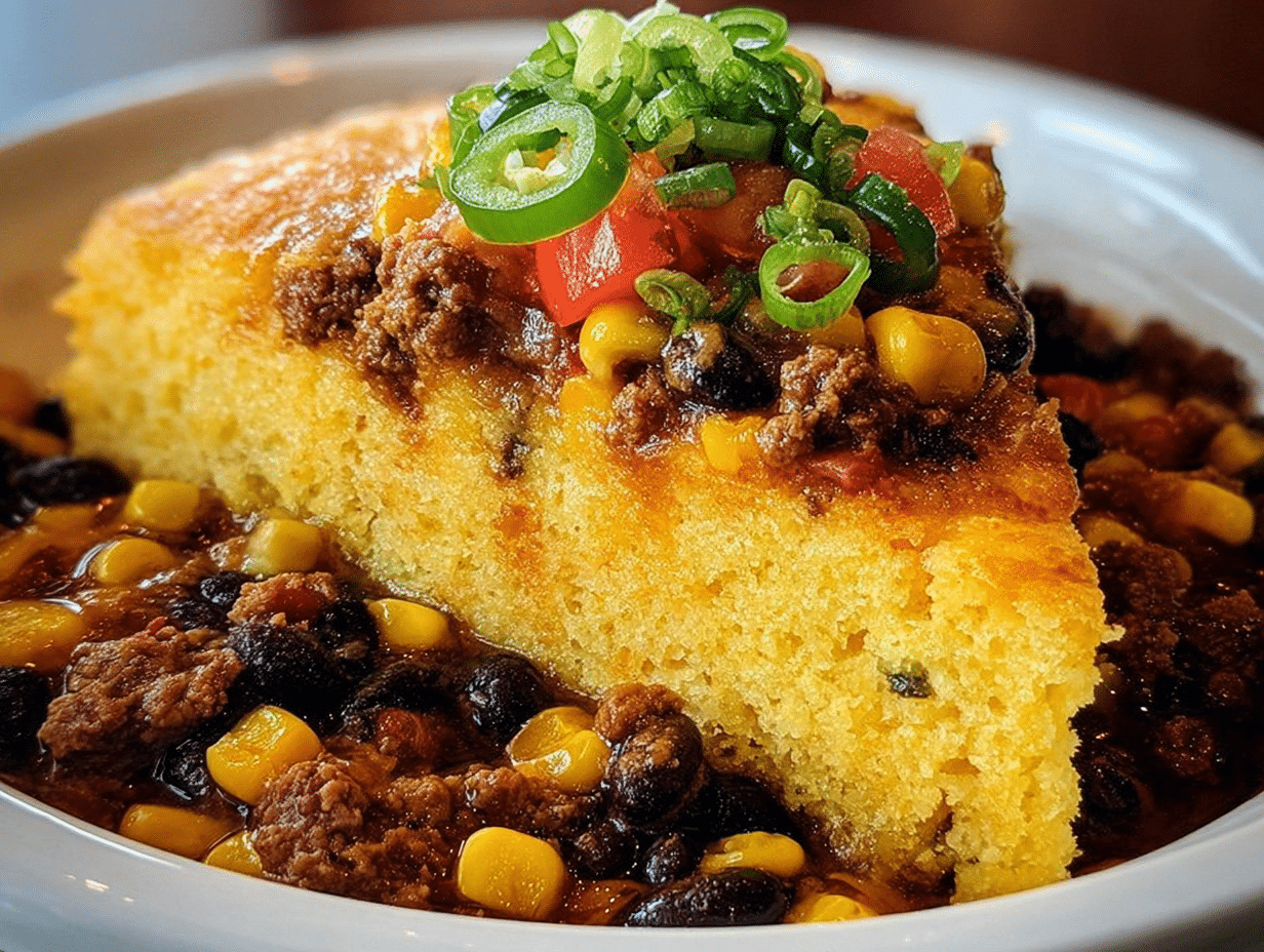 A hearty and flavorful casserole that combines cornbread with savory ingredients for a delicious meal.