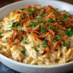 The creamy chicken casserole is a classic American dish that has roots in the mid-20th century, when convenience foods began to rise in popularity. This comforting meal combines tender chicken with a creamy sauce, often made from canned soups, and is topped with a crunchy layer of crackers or breadcrumbs. It’s a dish that embodies the essence of home cooking—simple, satisfying, and made with love.