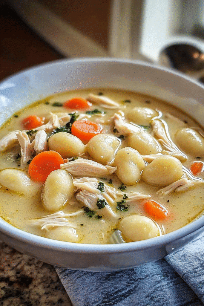 In Italy, gnocchi is often served with a variety of sauces, from simple tomato to rich cream-based sauces. The addition of chicken and vegetables in this soup reflects the American love for hearty, filling meals that bring families together. This dish not only warms the body but also connects us to the rich culinary traditions of Italy, making it a perfect choice for family dinners or cozy gatherings.