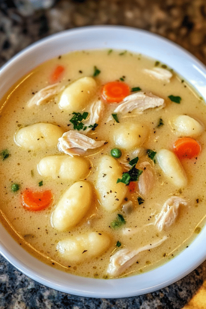 Gnocchi, the star of this soup, holds a special place in Italian cooking. These small, pillowy dumplings are typically made from potatoes, flour, and eggs, creating a soft and chewy texture that pairs beautifully with various sauces. In Italy, gnocchi is often served as a first course, showcasing the country’s love for simple yet flavorful ingredients. The addition of chicken and vegetables in this soup elevates it to a complete meal, perfect for families seeking warmth and nourishment.