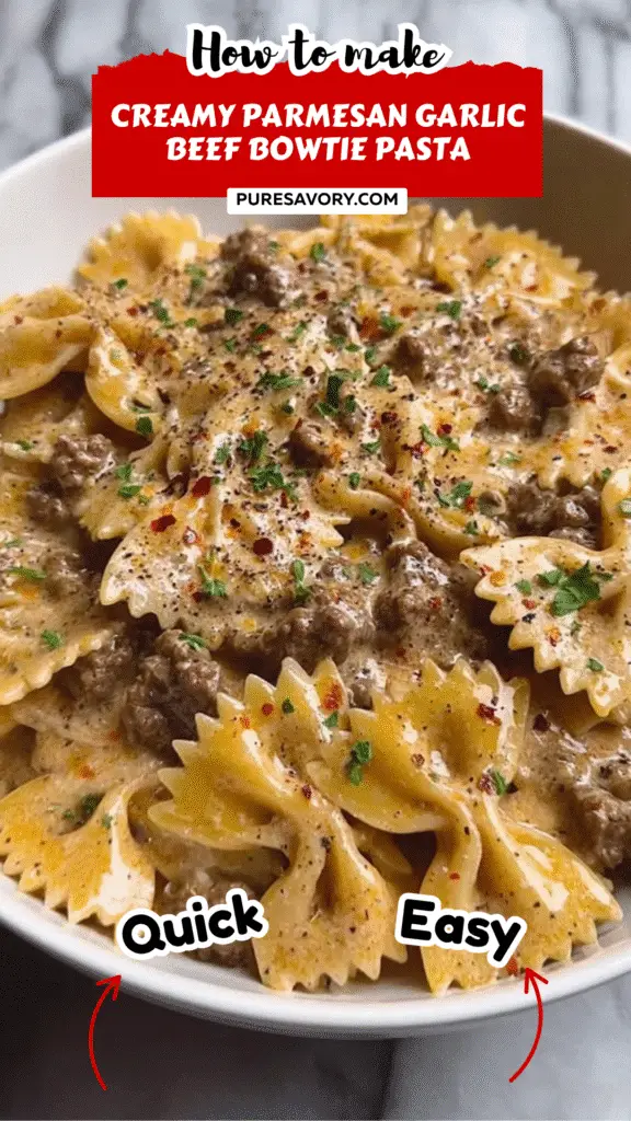 Whether you’re a seasoned home cook or just starting your culinary journey, this recipe is approachable and forgiving. It’s perfect for those evenings when time is short, but you still want to serve something special. So, let’s dive into the world of Creamy Parmesan Garlic Beef Bowtie Pasta and discover how to make this comforting dish that will surely become a staple in your home!