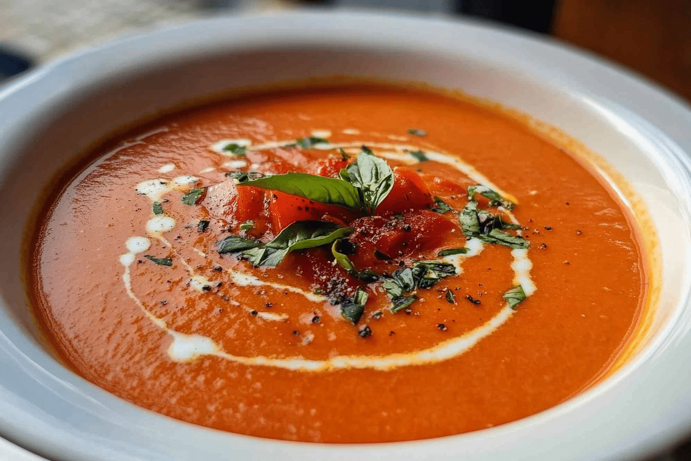 A rich and flavorful soup made with roasted tomatoes, perfect for a comforting meal.