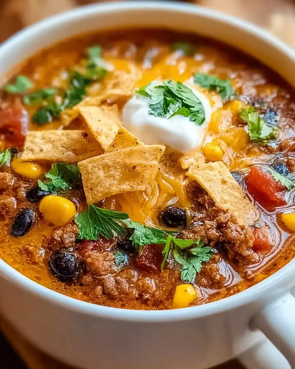 30-Minute Creamy Taco Soup is a delightful fusion of textures and flavors. Drawing inspiration from traditional Mexican recipes, this soup marries ground beef, beans, corn, and spices into a creamy, comforting dish that warms the soul. It’s a dish that embodies the spirit of home cooking—simple, hearty, and packed with love. This soup doesn’t just nourish you; it takes you on a culinary journey where each bite tells a story of family gatherings and Mexican fiesta nights.