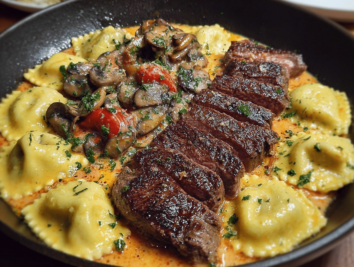 Why You’ll Love This Creamy Tomato Mushroom Ravioli with Seared Steak