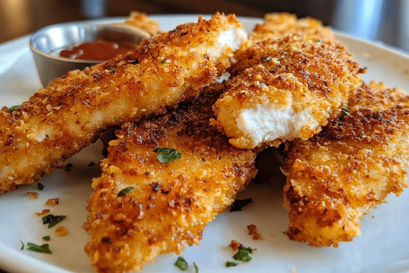 A simple and delicious recipe for crispy baked chicken tenders that are perfectly golden and crunchy.