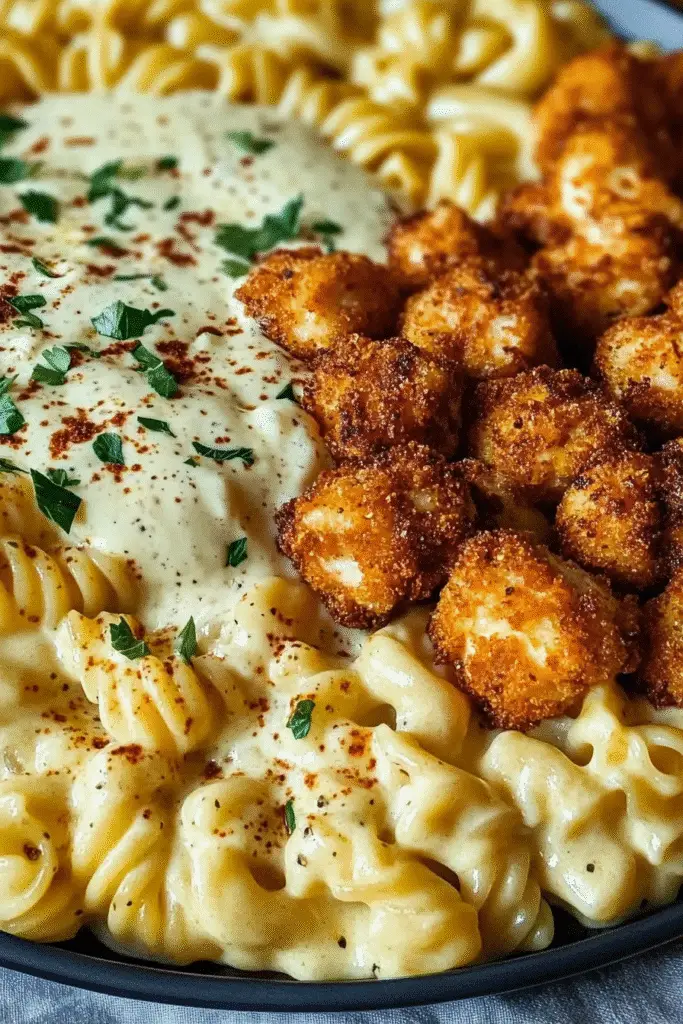 This dish is more than just a meal; it’s a comforting hug on a plate. The combination of crispy chicken bites and the rich, spiced Alfredo pasta creates a symphony of flavors that dances on your palate. Each forkful is a reminder of the joy that comes from sharing good food with loved ones. The creamy sauce, infused with a hint of spice, perfectly complements the crunch of the chicken, making it a family favorite that I often return to when I want to recreate that joyful atmosphere.