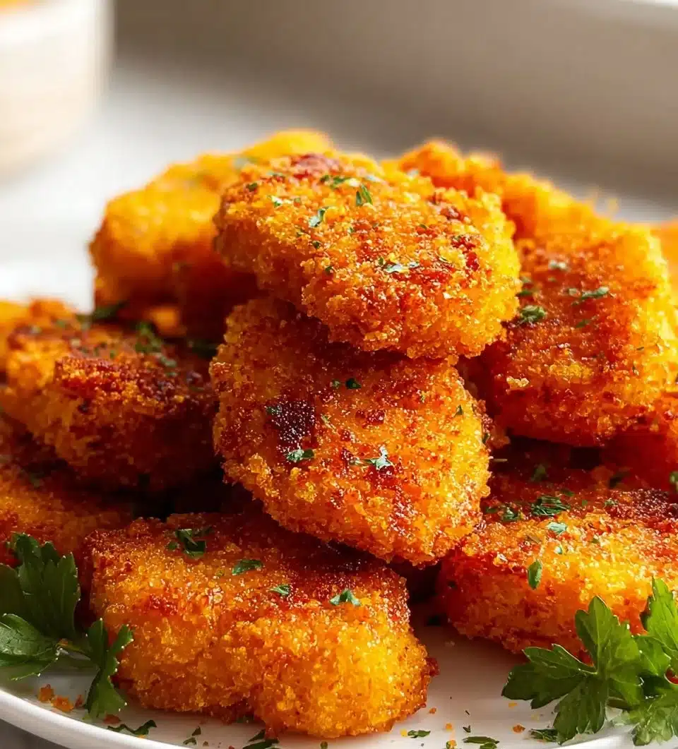 Delicious, golden crispy chicken nuggets that are perfect for families and gatherings, offering a delightful crunch and juicy center.