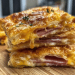 The Crispy Ham & Cheese Puff Pastry Stacks are a delightful creation that embodies the essence of American comfort food. Originating from the classic French puff pastry, this recipe has been embraced and adapted by many cultures, making it a beloved savory appetizer in homes across the globe. The beauty of puff pastry lies in its versatility; it can be transformed into sweet or savory dishes, and these stacks are a perfect example of how simple ingredients can come together to create something extraordinary.