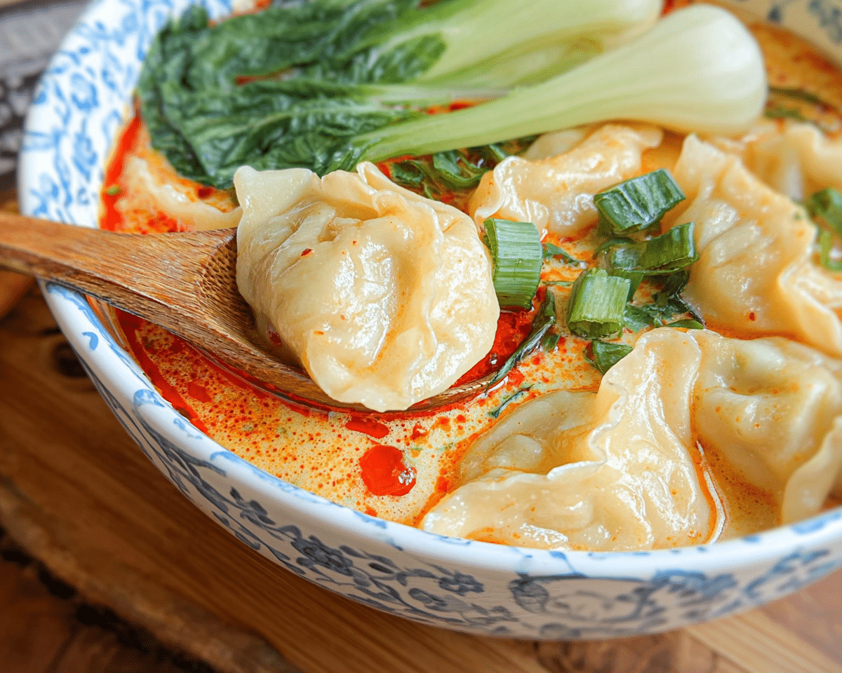 A warm and filling soup perfect for spring dinners, featuring delicious dumplings and a flavorful curry broth.