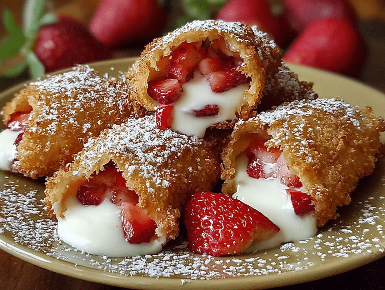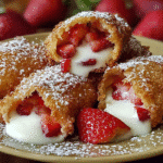 The Deep-Fried Strawberry Cheesecake Pies are a delightful fusion of classic cheesecake and the fun of deep-frying. Originating from the American dessert scene, these pies take inspiration from traditional fruit-filled pastries, adding a creamy twist with cheesecake filling. The combination of crispy pastry and luscious strawberry cream creates a mouthwatering experience that’s hard to resist. This dessert is not only a treat for the taste buds but also a visual delight, making it a popular choice at fairs and family gatherings. With their rich flavors and satisfying textures, these pies are sure to become a favorite in your home.